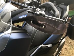 ヤマハ純正のナックルガードもハイスクリーンとも同時装着は不可となっていますが、これもやはりハンドルを切ると干渉してしまいました。